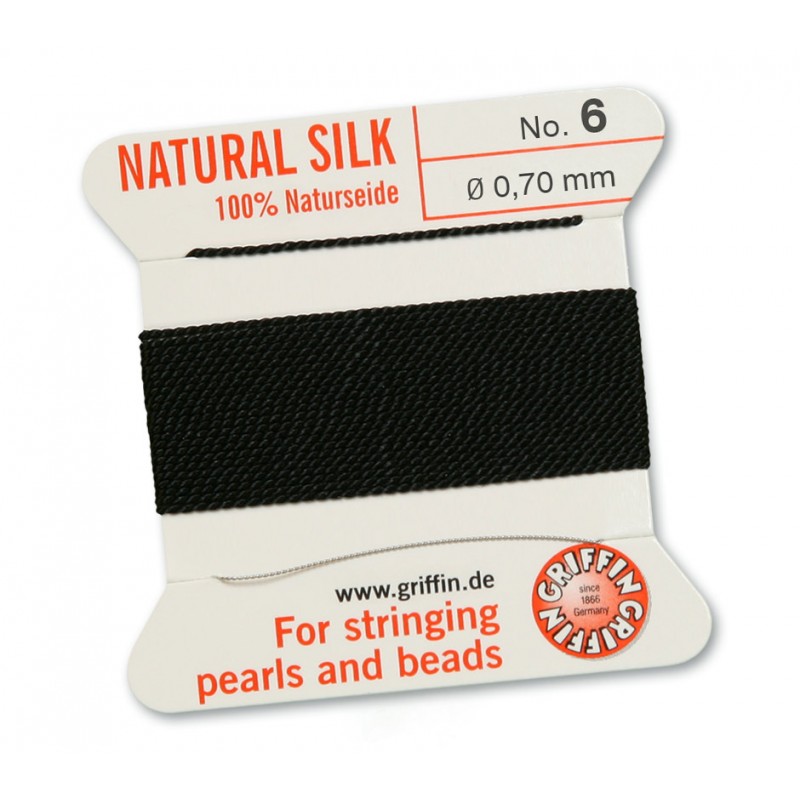 100% Dabīgā zīda aukla ar adatu Melns Nr.6 - 0.70mm