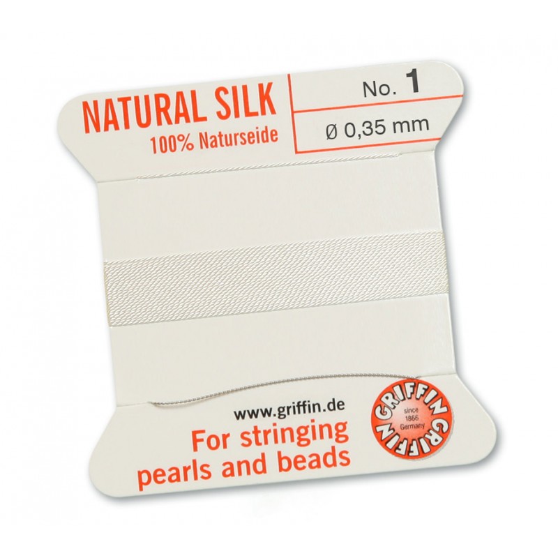 100% Dabīgā zīda aukla ar adatu Balts Nr.1 - 0.35mm