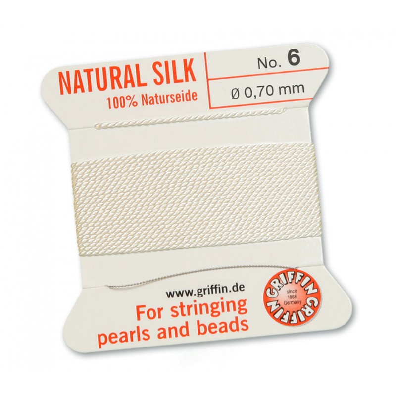 100% Dabīgā zīda aukla ar adatu Balts Nr.6 - 0.70mm