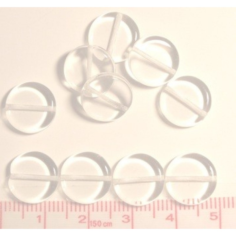 Caurspīdīgs disks ar caurumu pa diagonāli. Diska diametrs 10mm, biezums aptuveni 3mm. Cena par 10 gab.
