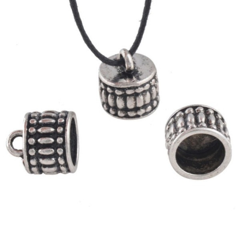 Tibetas stila antīka sudrba krāsas uzlīmējama pērļu cepure ar cilpu. Augstums 12mm, platums 11mm, derēs 8.5mm platai auklai. Cilpas diametrs 1.5mm.