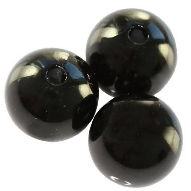 Plastmasas pērle melnā krāsā. Diametrs 12mm, cauruma izmērs 2.3mm.