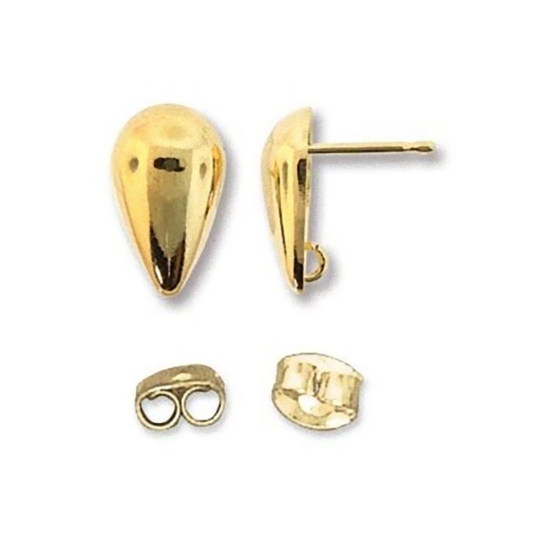 Eleganta apgriezta piliena formas auskaru nagliņa ar cilpu. Zelta pārklājums, izmērs 14mm.