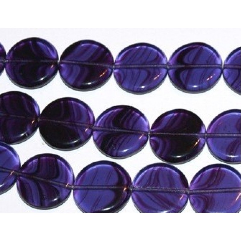 15mm diametrā, caurspīdīga kapeika izteikti violetā krāsā (attēlā izskatās tumši zila) ar melnu viļņu rakstu. Cena par gab.