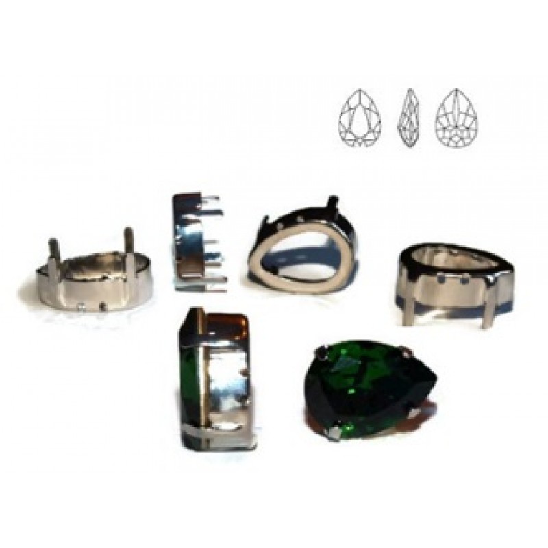 Metāla rāmis SWAROVSKI 4320 bumbiera formas kristāliem. Izmērs 18x13mm, četri caurumi, vaļēja aizmugure, rāmja augstums 5mm.