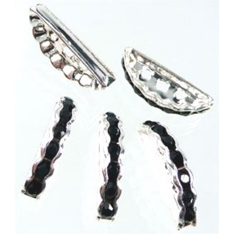 Vieglmetāla starplika ar septiņiem kristāliem melnā krāsā. Starplikas izmērs 19x8mm, trīs caurumi, sudraba pārklājums. Cena par 1 gab.