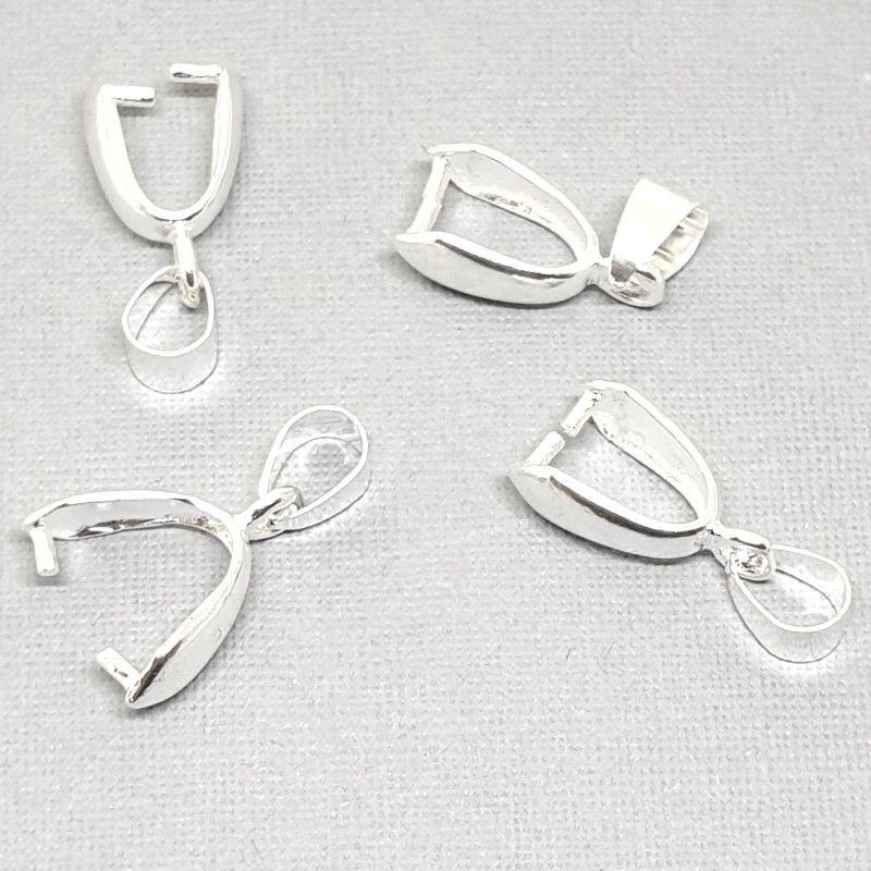 Pilnībā aizvērtas skavas platums aptuveni 5mm, cilpas izmērs 5x4mm. Metāls ar sudraba pārklājumu. Piemērots lieliem kuloniem.