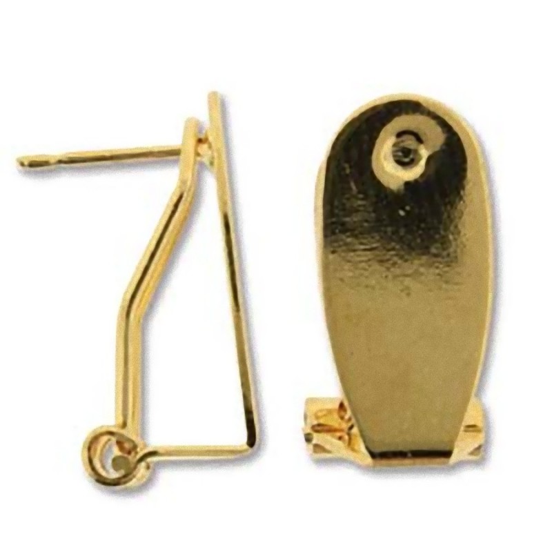 Auskaru nagliņa - klipsis ar lielu plakni kabašoniem, izšuvumiem u.c. Izmērs 21x9mm. Zelta pārklājums. Cena par pāri.