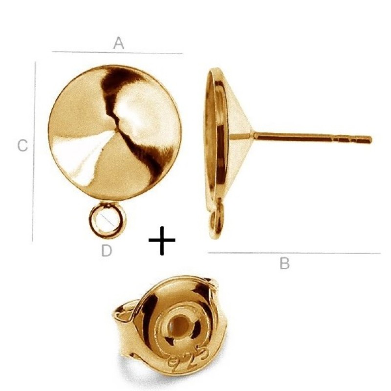 0.4um 24K Zelta auskaru sagatave ar cilpu 12mm SWAROVSKI 1122 rivoli, sudrabs AG-925 (x2)