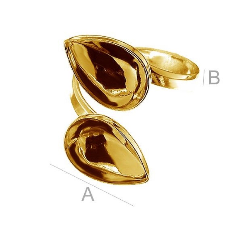 24K zelta S-veida gredzens ar 2 pamatnēm SWAROVSKI 4320 14x10mm kristāliem, AG-925 (x1)