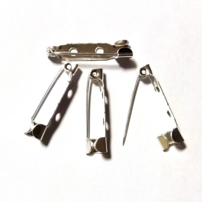 Piespraudes pamatnes kopējais garums 20mm, sudraba krāsā. Adatas aizslēgs parastais.