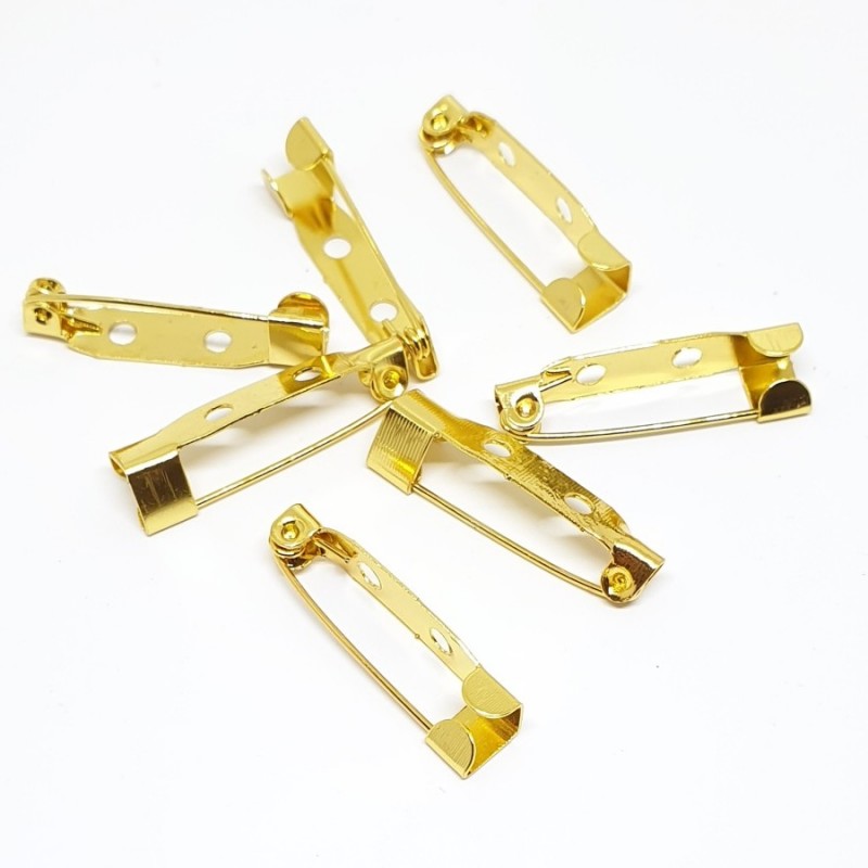 Piespraudes pamatnes kopējais garums 25mm, zelta krāsā. Adatas aizslēgs parastais.