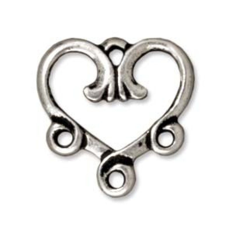 Antīka sudraba pārklājums, 3>1 sirdsveida savienojums 13.5x12 mm