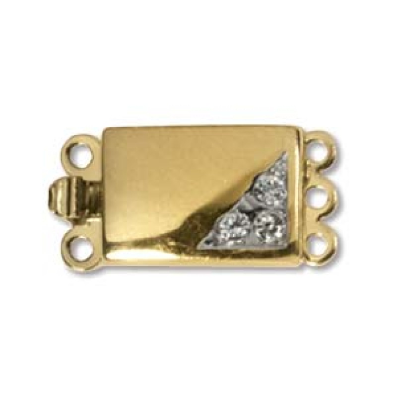18x9mm 3-rindu elites klases aizdare ar 3 kristāliem (2mm diametrā), zelta pārklājums*. Šī Elegant ELEMENTS kvalitatīvā aizdare Jūsu rotām piešķirs patiesu eleganci!