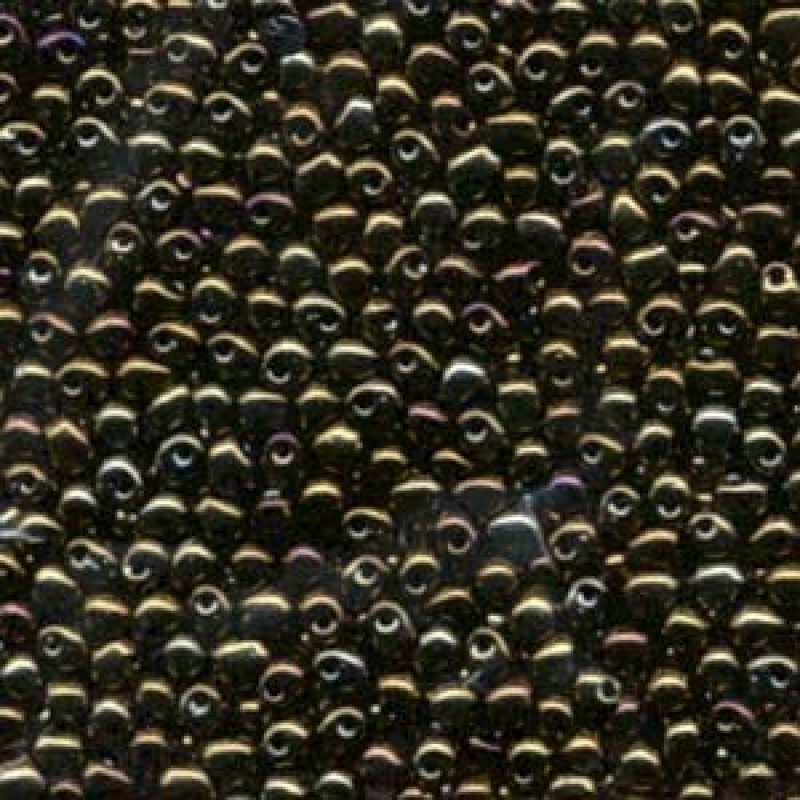 Necaurspīdīgas brūnas pērlītes ar varavīksnes efektu (mainās krāsa atkarībā no gaismas krituma), izteikta piliena formā.