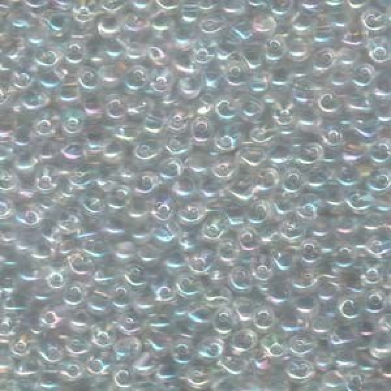 Caurspīdīgas pērlītes ar varavīksnes efektu, izteikta piliena formā.