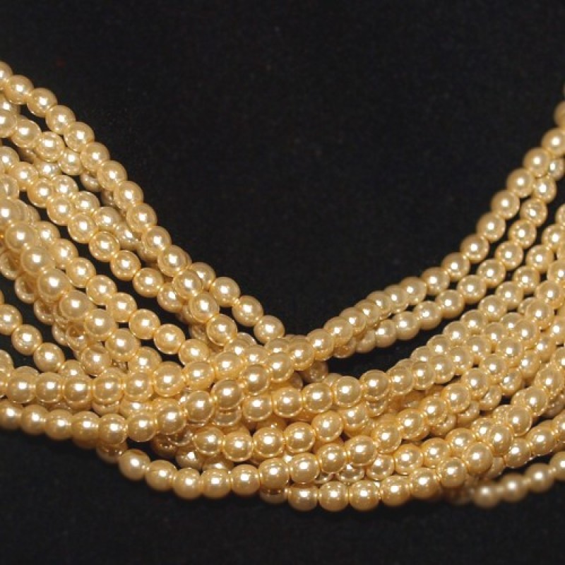 Kvalitatīvas čehu stikla pērles ar perlamutra pārklājumu, 3mm diametrā, krāsa - gaišs krēms/vaniļa.