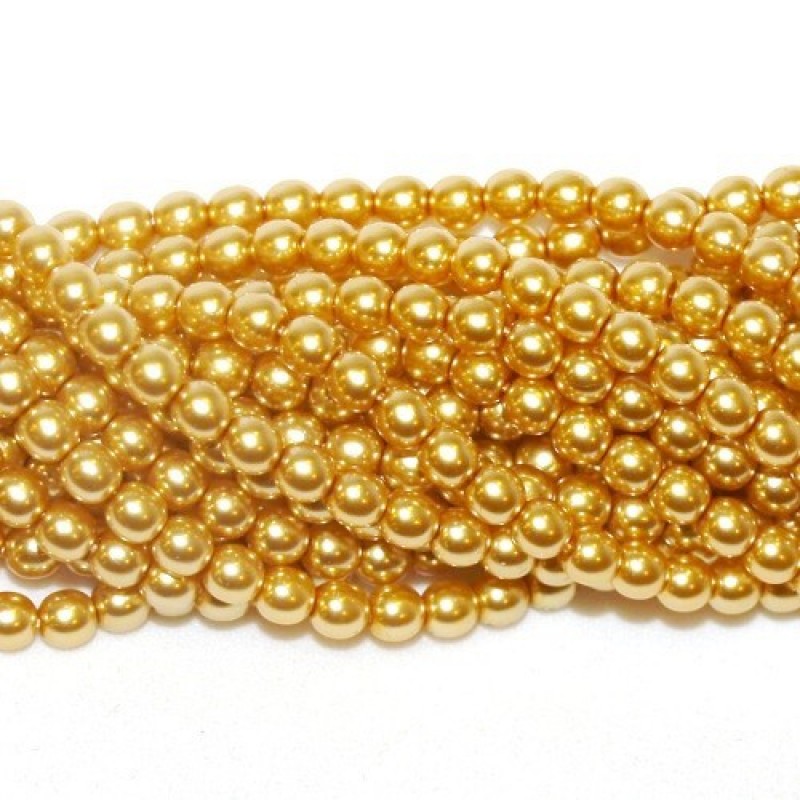Kvalitatīvas čehu stikla pērles ar perlamutra pārklājumu, 3mm diametrā, zelta krāsā.
