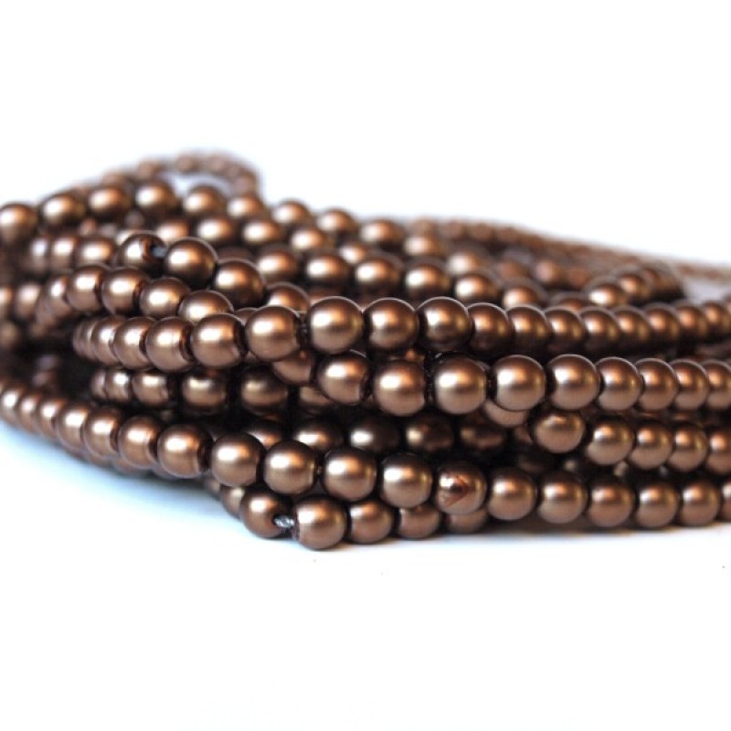 Kvalitatīvas stikla pērles ar perlamutra pārklājumu. Matētas satīna brūnas.