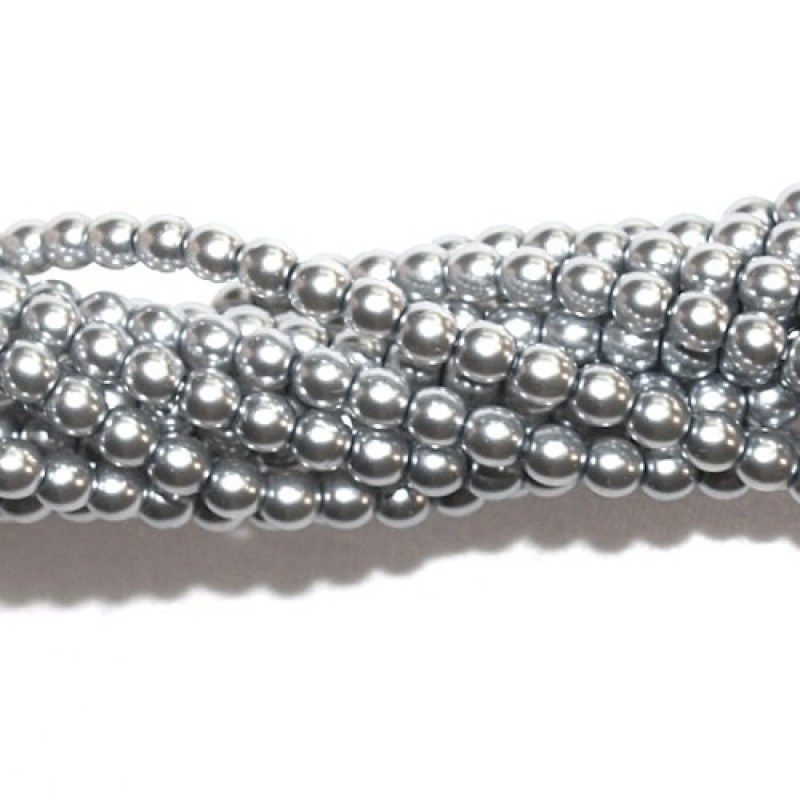 Kvalitatīvas čehu stikla pērles ar perlamutra pārklājumu, 3mm diametrā, krāsa - gaiši pelēka, sudraba.