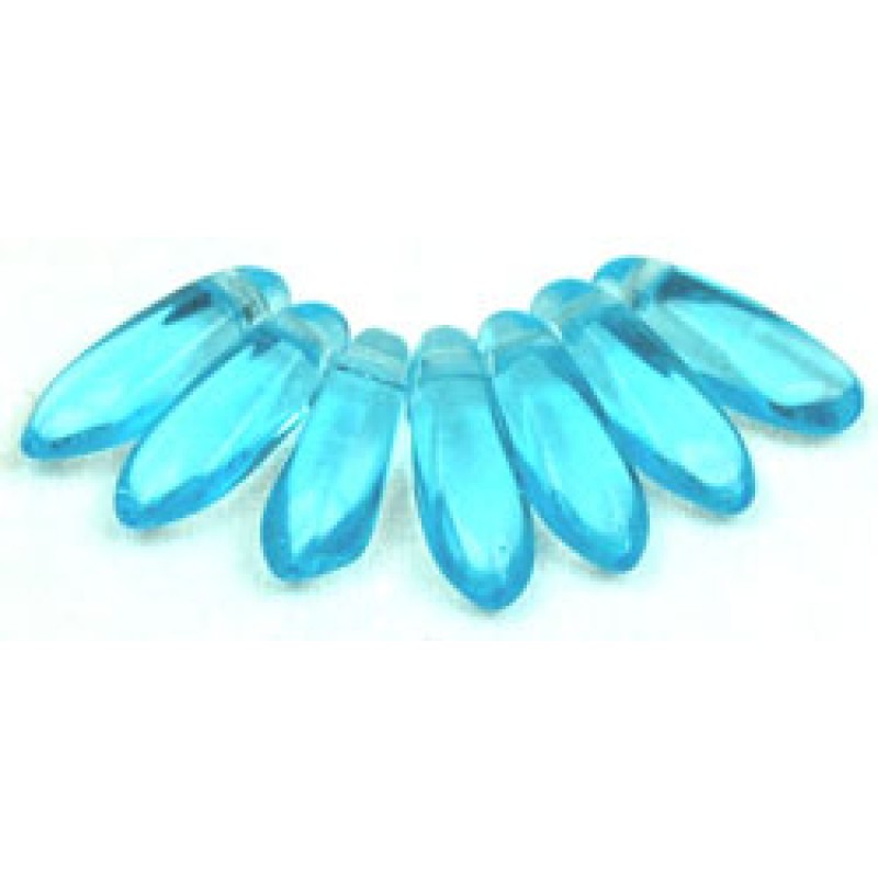 Izstiepta piliena formas pērlītes ūdens zilā krāsā, kas ideāli piemērotas puķu ziedlapiņu veidošanai. Garums 10mm, platākajā vietā 3mm plata. Pērlītēs var būt gaisa burbulīši. Cena par 20 gab.