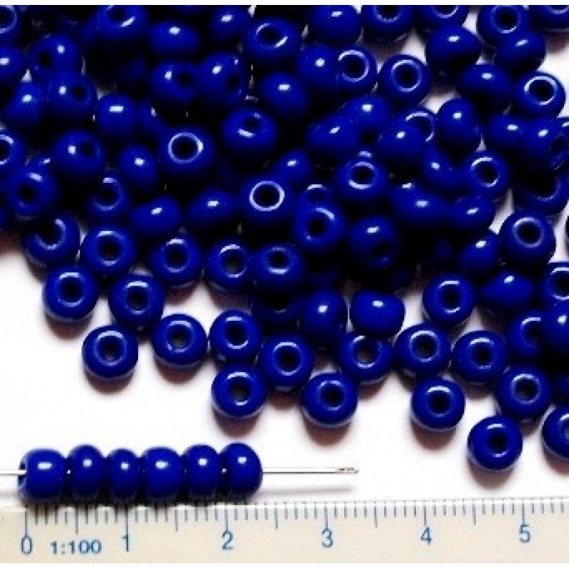 Salīdzinoši liela, necaurspīdīga čehu stikla pērle tumši zilā krāsā. Savērtas trīs pērles ir aptuveni 1cm, pērles diametrs ir aptuveni 5mm. Caurums ~1.5mm, forma drīzāk neregulāra. 25g iepakojums +/- 200 pērles.