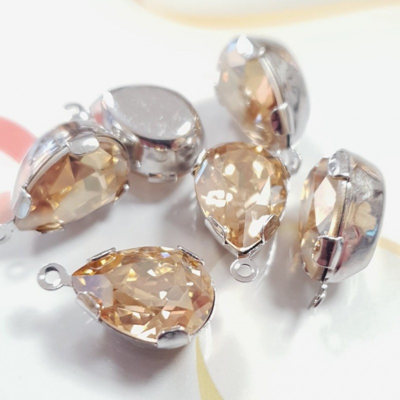 4320 14x10mm Crystal Golden Shadow F Pear shape Fancy stone ietvarā ar cilpu, rodija p.(x1)