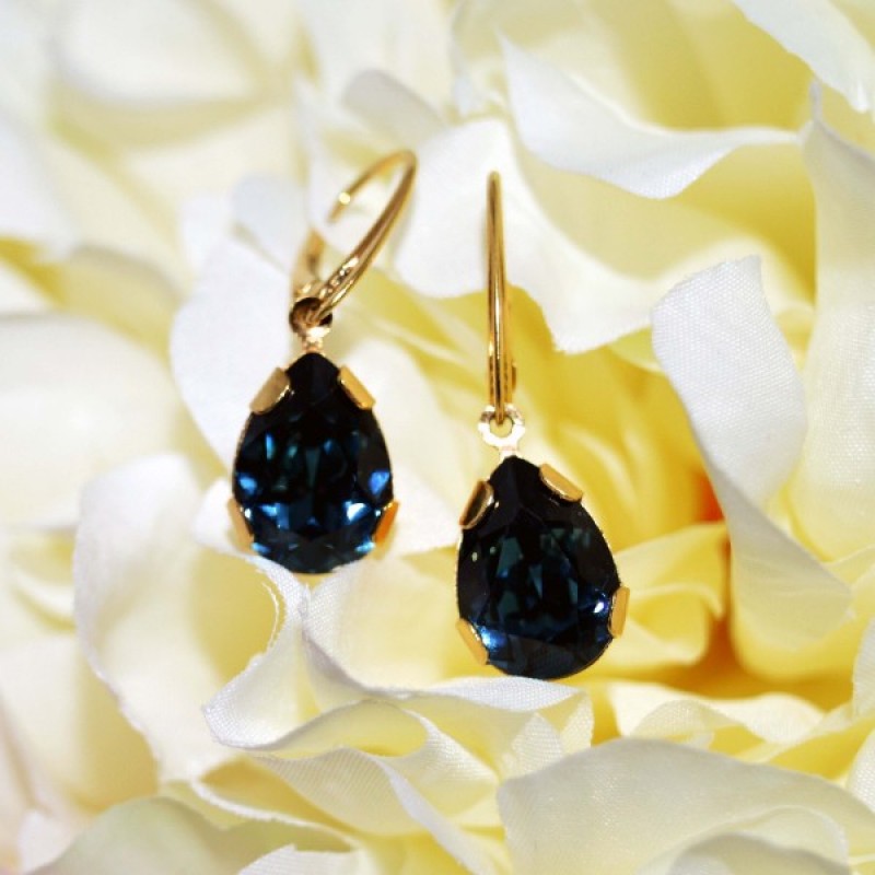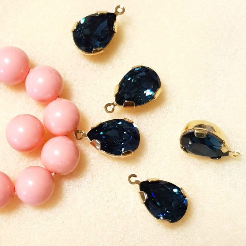 4320 14x10mm Montana F Pear shape Fancy stone ietvarā ar cilpu, zelta p.(x1)