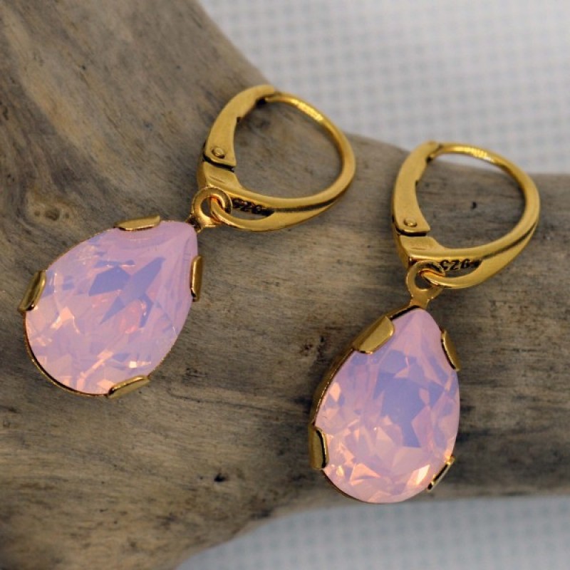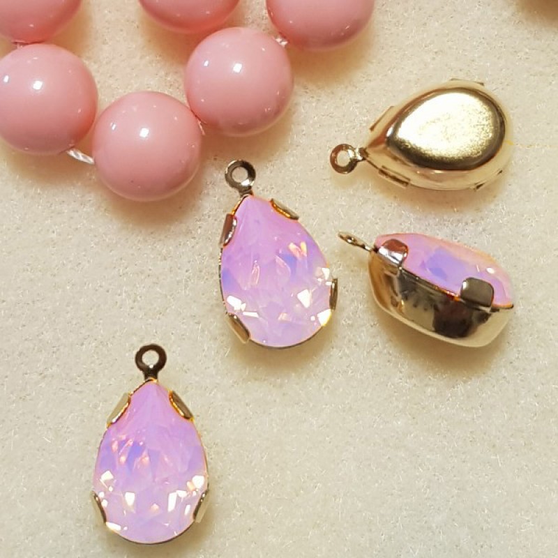 4320 14x10mm Rose Water Opal F Pear shape Fancy stone ietvarā ar cilpu, zelta p.(x1)