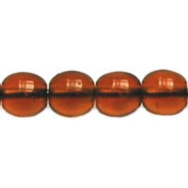 Caurspīdīga pret gaismu, tumša dzintara krāsas pērle.