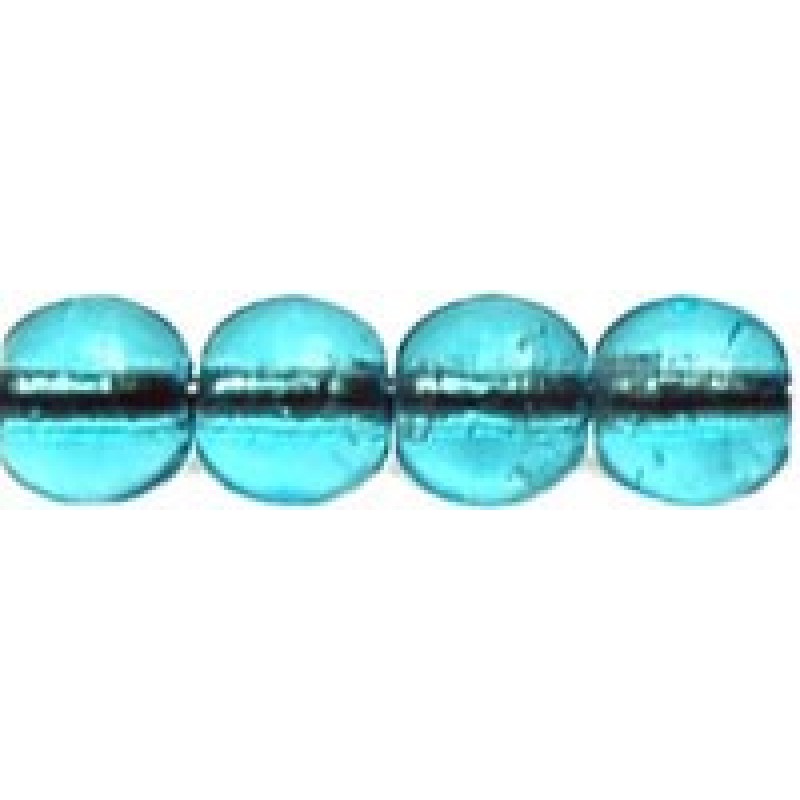 Caurspīdīgas, ūdenszilas pērles. Attēlā redzamās ir savērtas uz tumša diega. Cena par 20.
