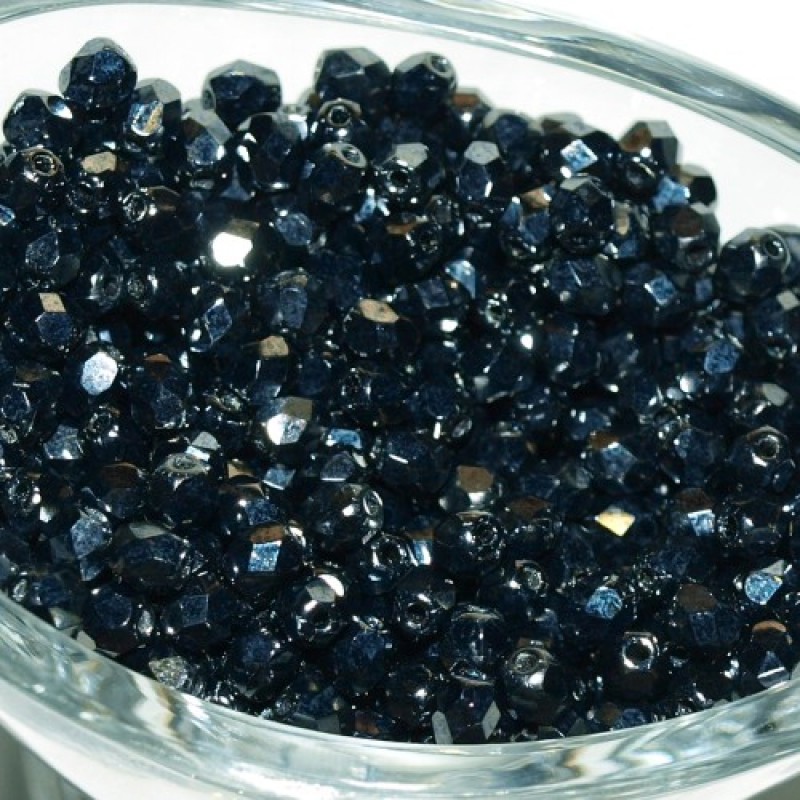 Necaurspīdīga, metāliski melna stikla pērle, garums 4mm.