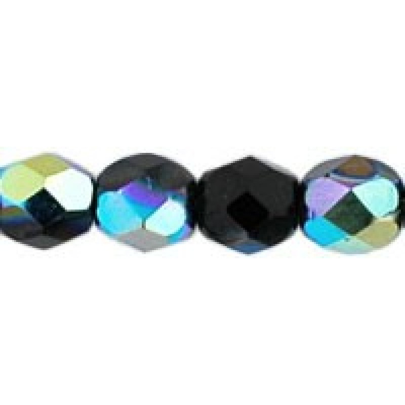 Necaurspīdīga, piķa melna stikla pērle ar AB pārklājumu, garums 4mm.