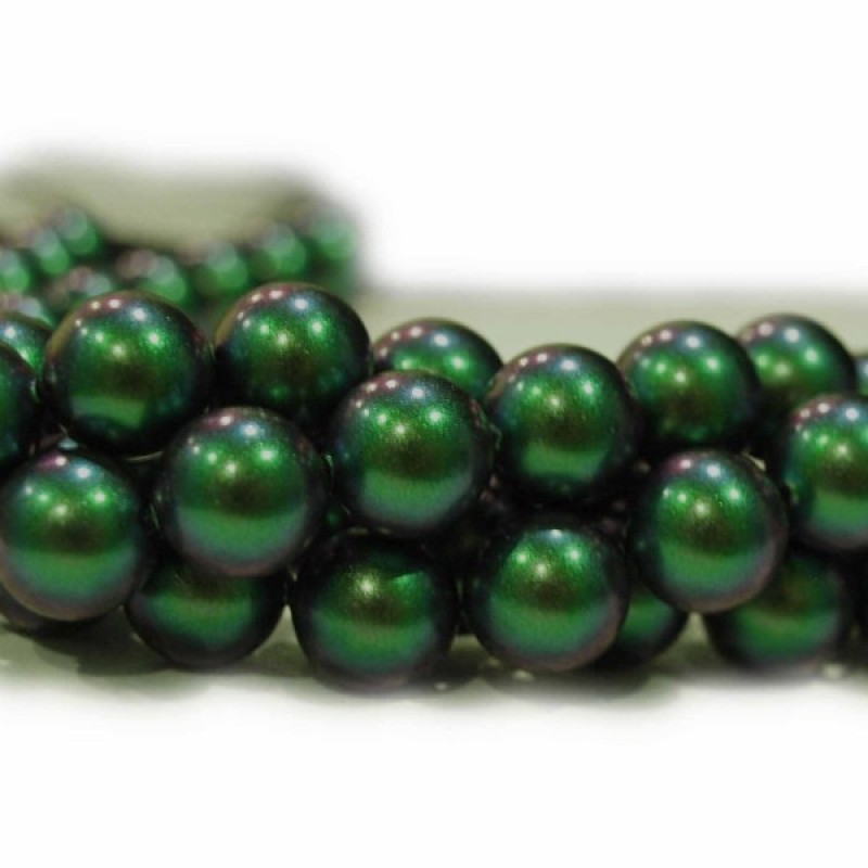 SWAROVSKI skarabeju zaļas kristāla pērles ar zaigojošu violetu pārklājumu, kas uzklāts īpašā tehnikā un rada vizuālu efektu - violetu malu pērlei.