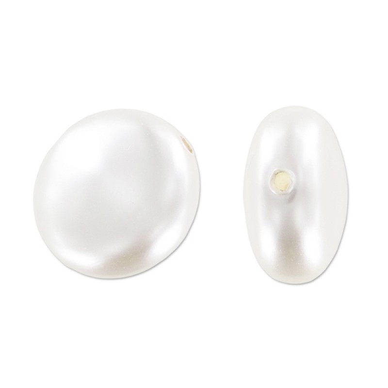 SWAROVSKI pērles-kapeikas baltā krāsā ar dabiska perlamutra pārklājumu. Diametrs 10mm, biezums aptuveni 6mm. Cena par gab.