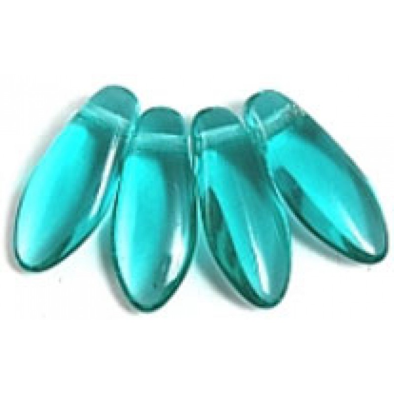 Izstiepta piliena formas pērlītes; krāsa - zilganzaļa. Ideāli piemērotas puķu ziedlapiņu veidošanai. Garums 12mm, platākajā vietā 5mm plata. Pērlītēs var būt gaisa burbulīši. Cena par 20 gab.