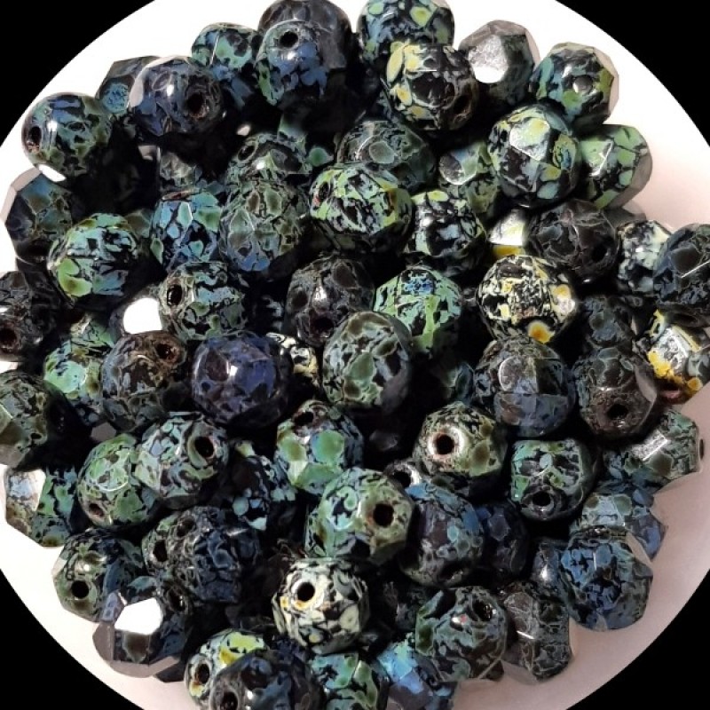 -35% Nav pieejams 6mm Jet Picasso Czech Fire-polished (x10)