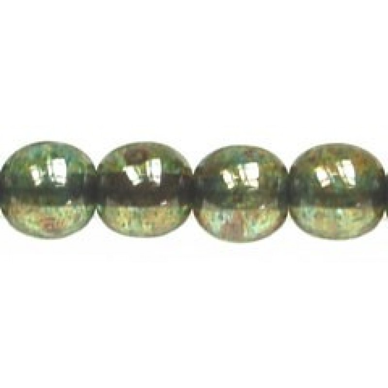 Attēlā redzamās pērles ir pavērstas pret gaismu. Pret gaismu caurspīdīgas zaļas pērles, pārklātas ar pelēku metālisku spīdumu. Cena par 10.