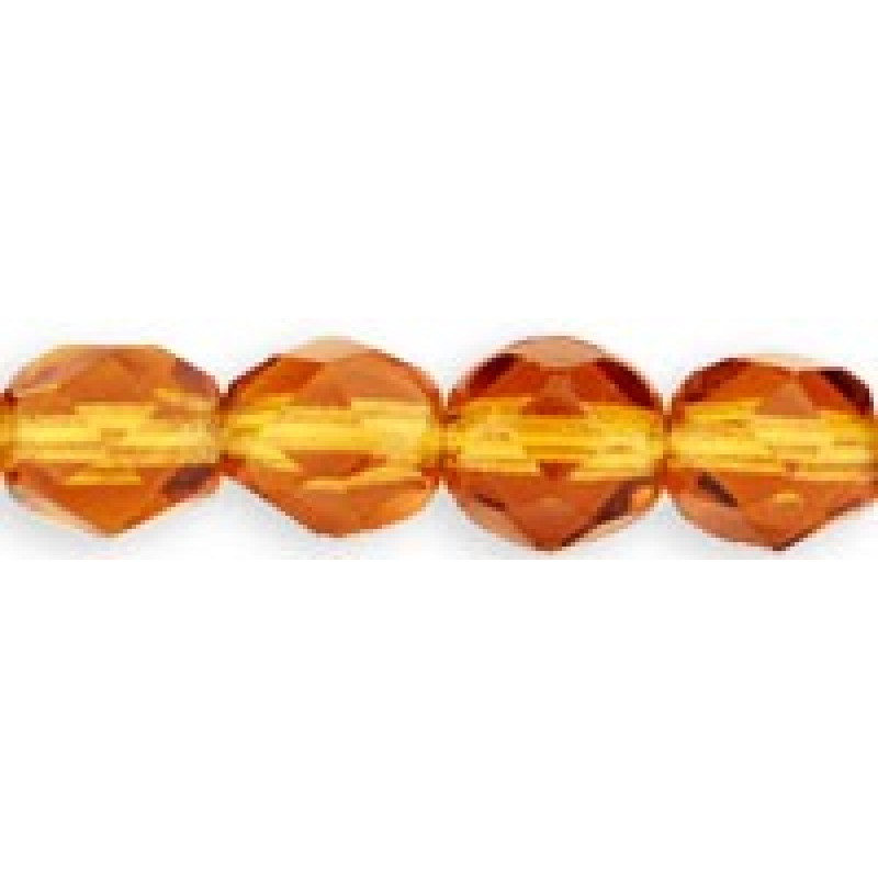 Caurspīdīga, dzintarkrāsas stikla pērle, garums 6mm.
