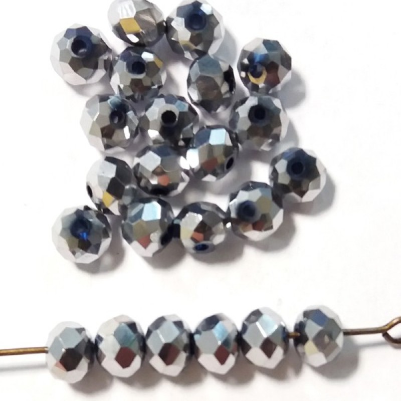 Galvanizēta stikla pērle -  rondela ar šķautnēm. Izmērs 6x5mm, krāsa galvanizēts sudrabs.