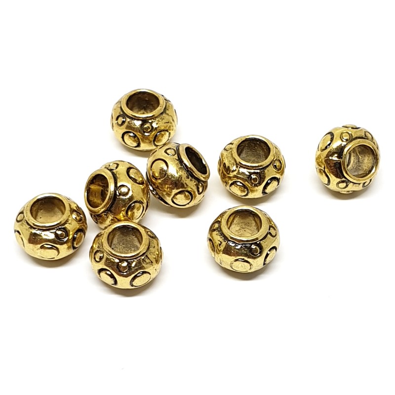 6x8mm dekoratīva pērle starplika veczelta krāsā. Cauruma diametrs 3.7mm.