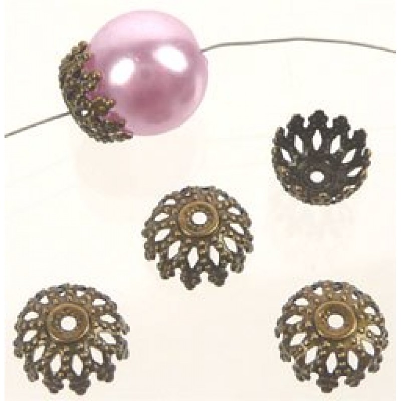 Vecbronzas krāsas filigrāna pērļu cepurīte. Izmērs 8x4mm. Cena par gab.