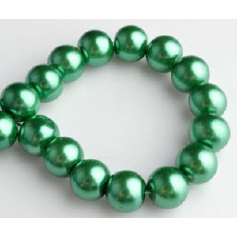 Necaurspīdīgas, 8mm diametra stikla pērles vēsi zaļā krāsā; krāsotas. Cena par 10 gab.