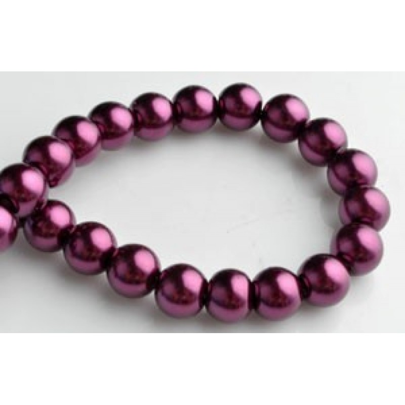 Necaurspīdīgas, 8mm diametra stikla pērles tumša sarkanvīna krāsā; krāsotas. Cena par 10 gab.