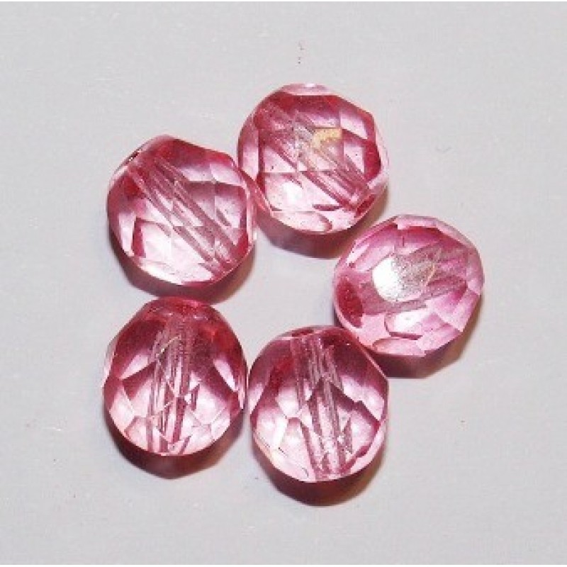 Caurspīdīga, tumši rozā krāsas ugunspulēta stikla pērle. Diametrs 8mm. Cena par 10 gab.