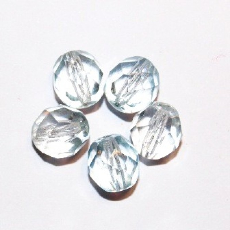 Ļoti gaiša, viegli pelēka, caurspīdīga ugunspulētā stikla pērle. Diametrs 8mm. Cena par 10 gab.