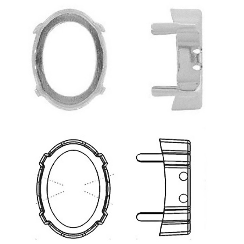 Metāla rāmis SWAROVSKI 4122 ovālajiem akmeņiem. Izmērs 8x6mm, četri caurumi, vaļēja aizmugure, rāmja augstums 3mm.