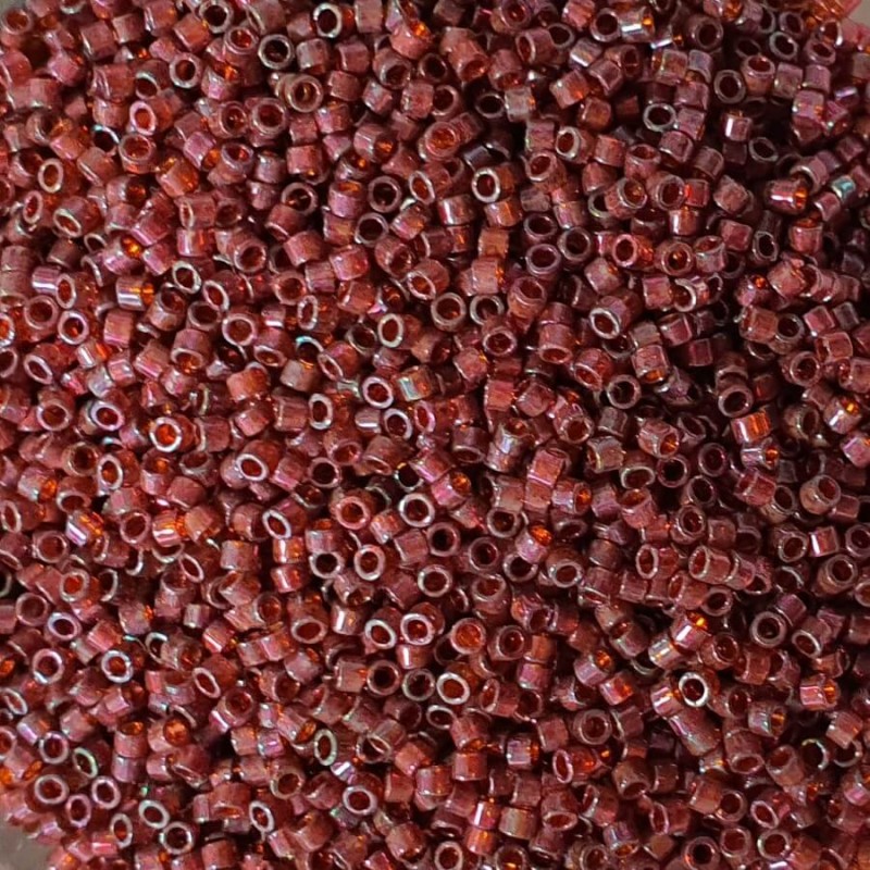 Caurspīdīgas sarkanbrūnas pērlītes ar metālisku varavīksnes spīdumu. Cena par 5g.