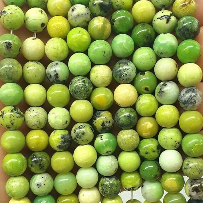 Dzeltenzaļa Hrizopraza akmens pērles. Akmeņu izmērs 8mm.