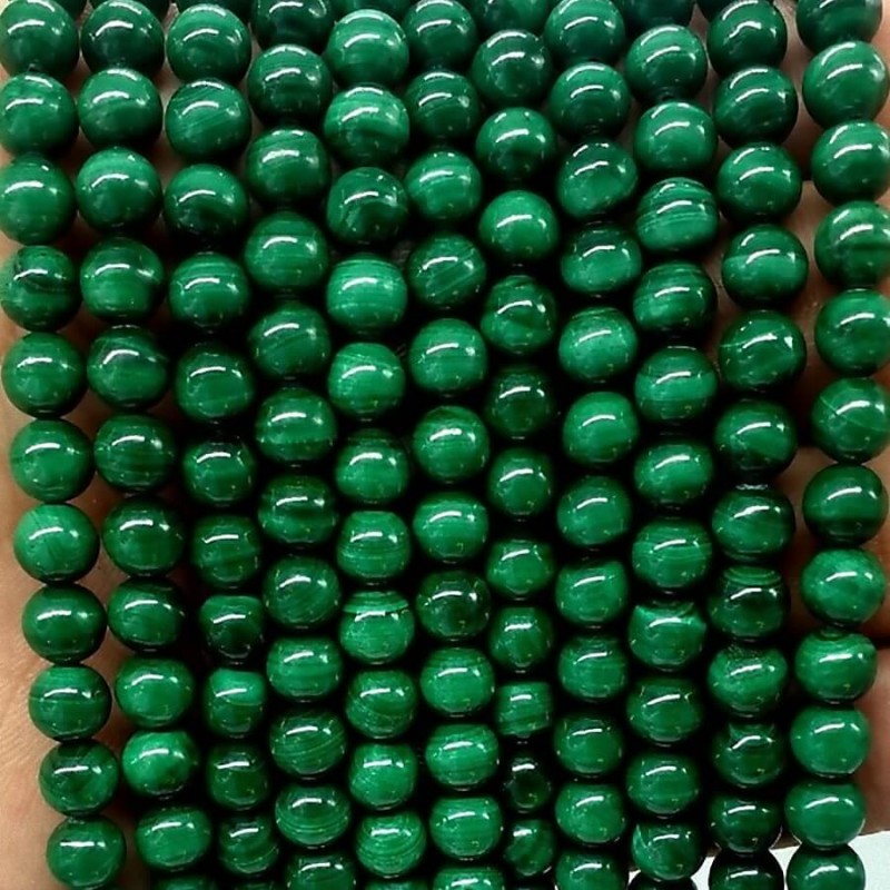 Dabīgā, tumši zaļā malahīta akmeņu pērles 6mm diametrā.